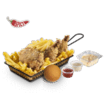 حاوی 1 ساق و 2 کعب یا 2 ساق و 1 کعب ران مرغ سوخاری شده با ادویه اسپایسی مخصوص سرزمین سوخاری، 180 گرم سیب زمینی سرخ شده، سالاد کلم، سس سیر، سس کنجد، نان بروچن به همراه یک عدد سس تکنفره کچاپ