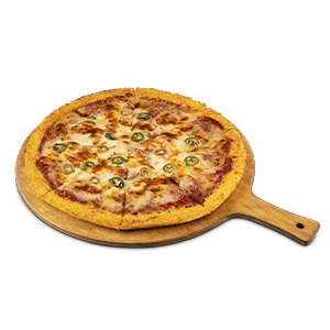 نان کرانچی 30 سانتی مخصوص سرزمین سوخاری، پپرونی مرغوب، پنیر پیتزا، فلفل هالوپینو سبز اسلایس شده، زیتون سبز به همراه دو عدد سس تکنفره کچاپ و مایونز